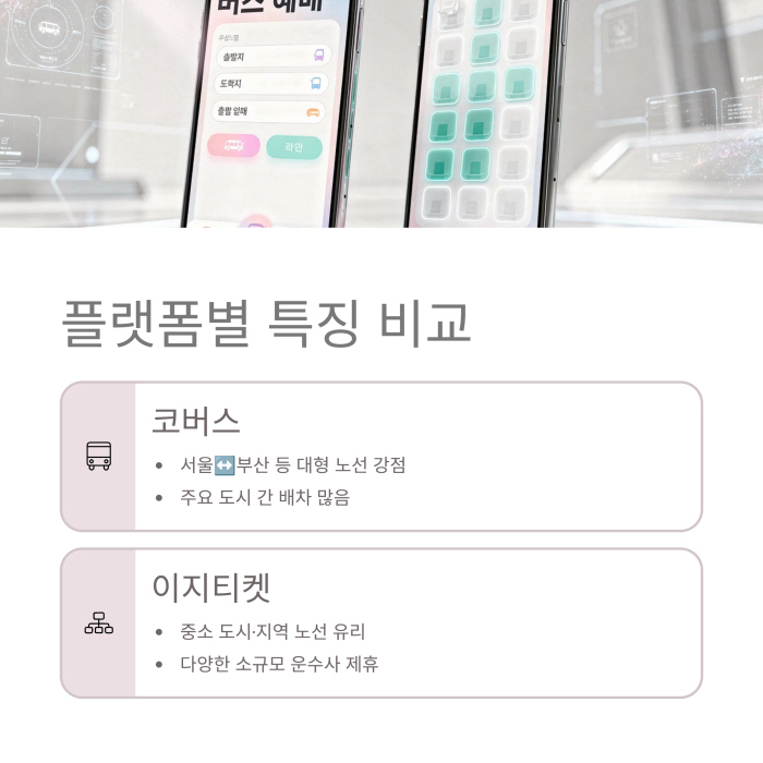 각 플랫폼은 운영사별로 노선이 다르며, 일부는 특정 출발지에 한정되므로 사전에 원하는 노선이 등록된 플랫폼을 확인해두어야 합니다.