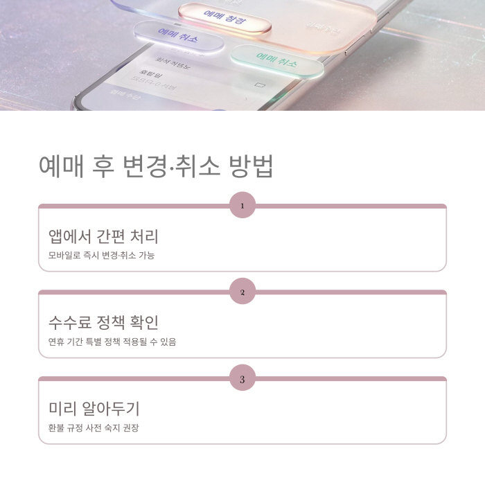 | 💡 알아두세요 설 연휴 수수료는 일반 시기와 다를 수 있습니다. 예매 전 반드시 ‘환불 정책’을 확인하세요. |